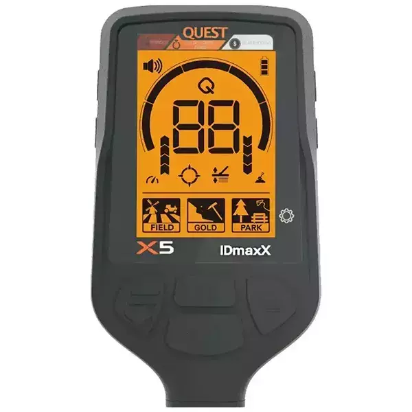 Plataforma de detección: CVX Compact VLF Pantalla: LCD de 3” 60x45 mm Bobina: Bobina Blad9 TurboD 9x5” impermeable Batería: batería Li-Po de 1000 mAh durante 8 ~ 12 horas Método de recarga: puerto USB-C Salida de audio: altavoz o auriculares con cable USB-C Protección: Resistente a la intemperie hasta 3 metros Indicador: nivel de batería, nivel de audio, identificación de objetivo, barras TID (5 segmentos), profundidad, nivel de sensibilidad. Modos de detección Modos de búsqueda: Campo, Oro, Parque Diseño del eje: Varilla telescópica no giratoria redonda de aluminio de 4 secciones de 46 cm a 130 cm (18 "-51" Frecuencia: única 12kHz Rango de identificación del objetivo: 1~99 Reposabrazos: en forma de U con pie de apoyo Peso unitario: 1,1 kg Función de localización: Sí Balance de tierra: Sí Linterna: Sí Luz de fondo: naranja